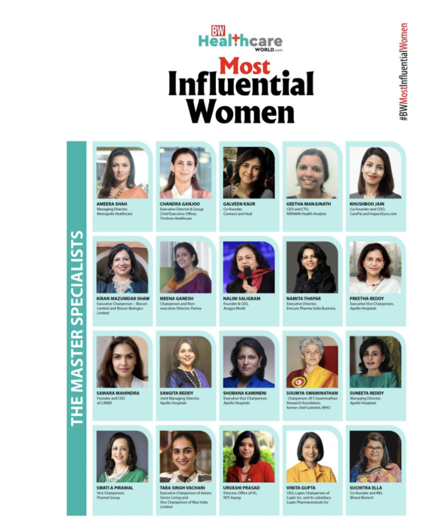 Other leaders in this list include Suneeta Reddy, Managing Director, Apollo Hospitals; Swati Piramal, Vice Chairperson, Piramal Group; Urvashi Prasad, Director, Office of VC, NITI Aayog; Kiran Mazumdar Shaw, Executive Chairperson – Biocon Limited etc.